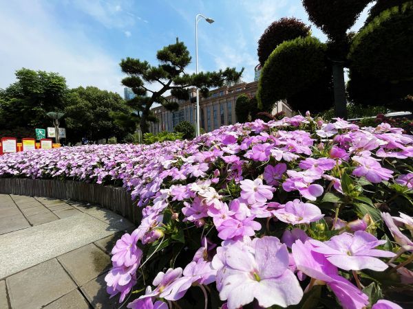洪山广场超级凤仙桑培斯清凉紫花带。