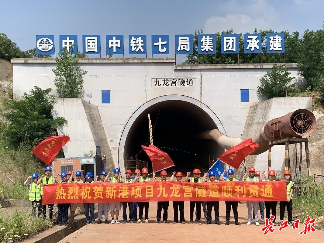 武汉新港江北铁路九龙宫隧道贯通。记者陶常宁 摄