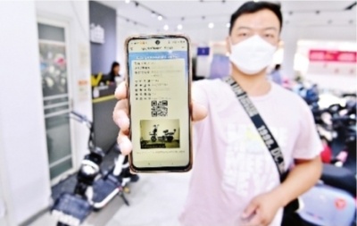 门店店员将方先生新购的电动自行车进行车辆信息预录入和车辆预查验,店员录入了方先生的信息后,将资料上传,非机动车管理科远程审核通过后,方先生现场在手机端缴费,当时就收到了自动生成的电动自行车行驶证电子版,上牌后直接骑车回家了。