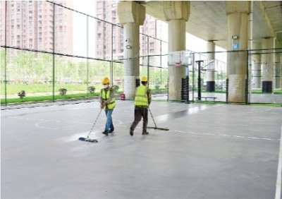愿景城A区、B区分别位于机场第二高速公路金银潭段高架桥两侧。长江日报记者近日走访看到,在高速公路高架桥下的空地上,新近建设了4个标准篮球场和1个五人制足球场。篮球场上铺设了硅胶,足球场上铺设了人工绿草坪,洁净养眼。旁边盛开一片花海,清新的环境吸引不少小鸟飞到桥下安家。