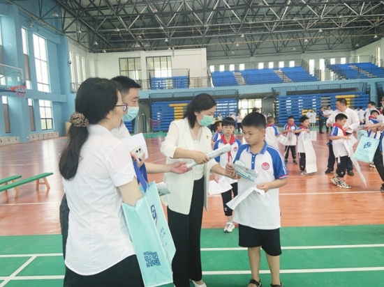 市卫健委党组成员、副主任隋晓琳向学校赠送视力表LED灯箱,市妇幼保健院党委书记、院长李江与该校签订《健康进校园服务承诺书》,市近视防控中心向学校赠送健康知识宣传品,并组织学生齐唱近视防控健康知识儿歌《孤勇者》。