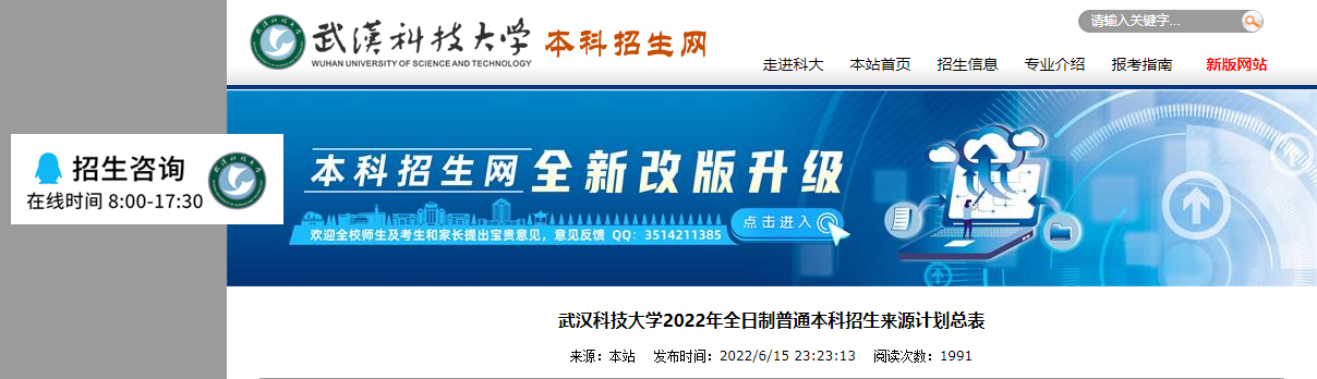 答:我校2022年本科招生计划已经在武汉科技大学本科招生网公布,和去年相比基本保持平稳。