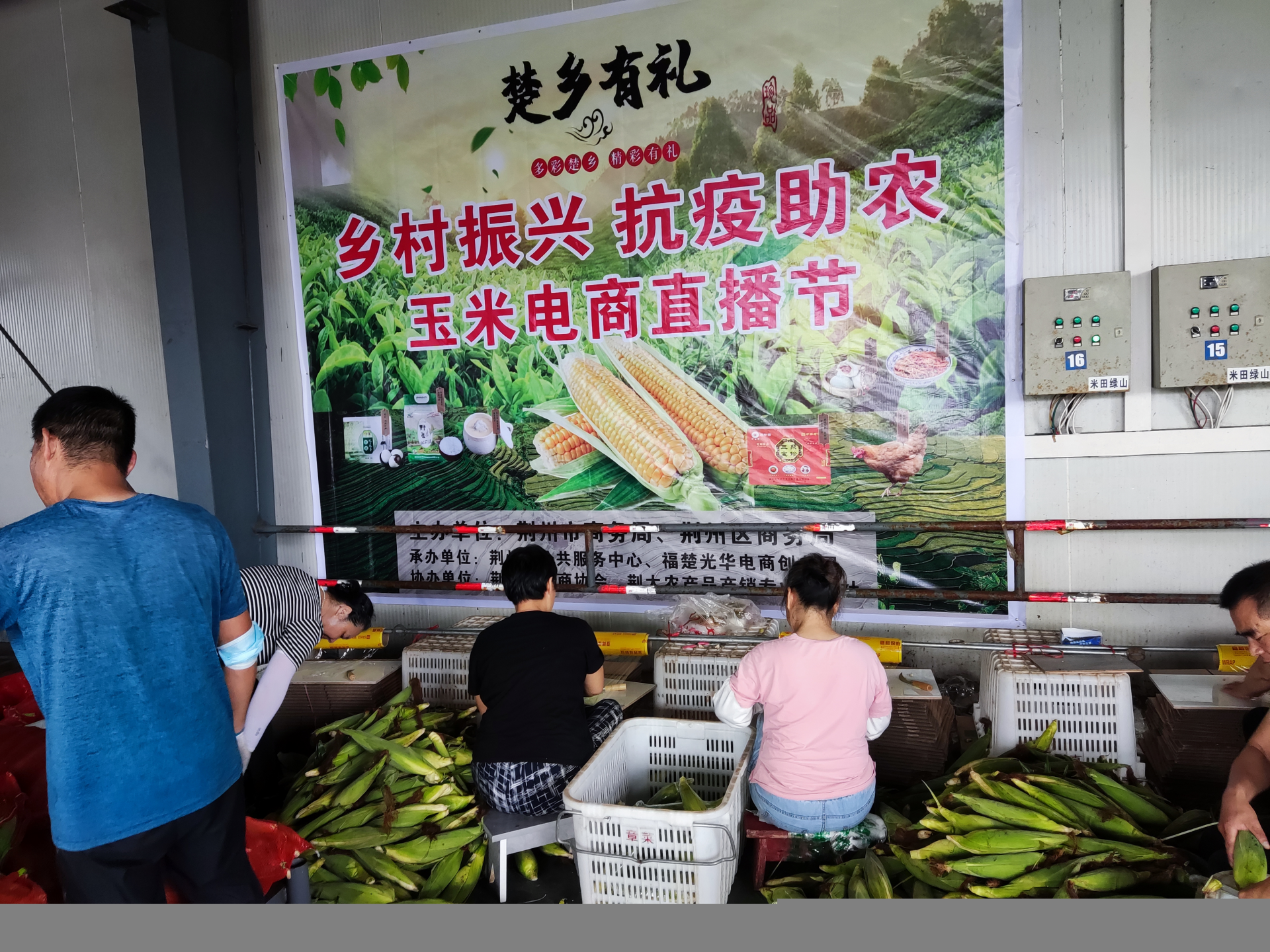 6月20日下午,在太湖米田绿山科技园的仓库内,荆州市商务局副局长申焰受邀现身本地网红抖音直播间,化身美食主播,现场进行玉米推销,邀请全国网民朋友们品鉴本地鲜食玉米,多方助力滞销玉米“消化”。