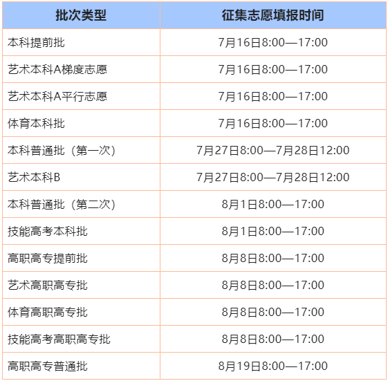 湖北省2022年普通高校招生录取各批次考生填报征集志愿时间表