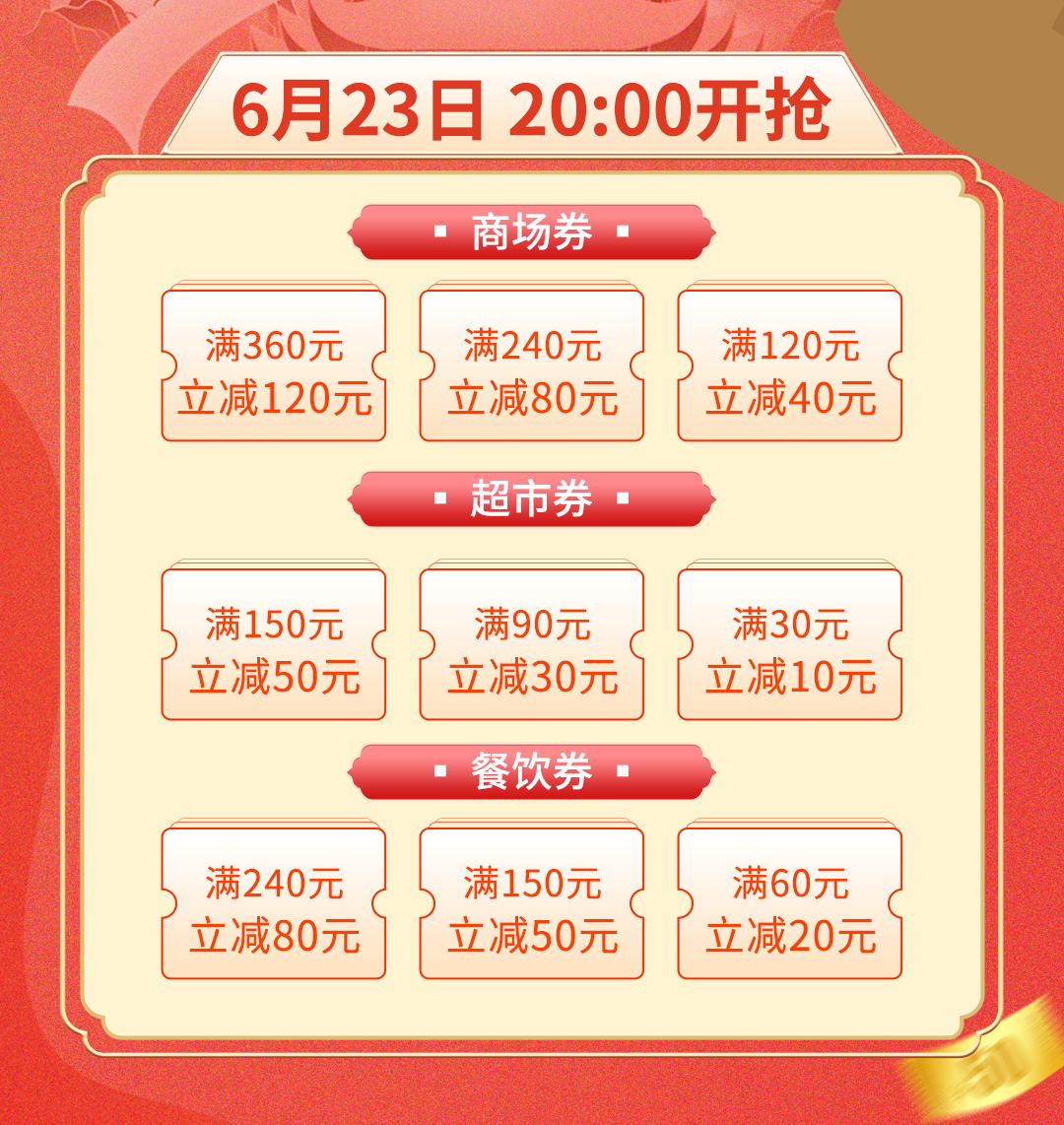 首轮消费券分2批发放:6月13日20:00投放第一批;6月23日20:00投放第二批。