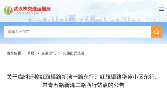 ● 红旗渠路新湾一路东行站点临时向前迁移100米;