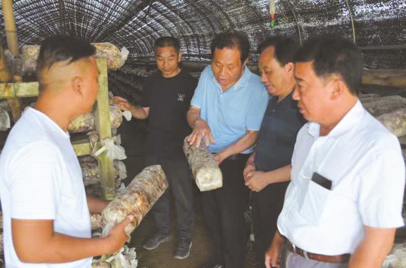 连日来,曾都区洛阳镇邱畈村宜发生物菌协会所属的40多个菇棚里人头攒动,菇农们忙着为40多万袋菌棒注水、保湿、降温。图为食用菌专家进棚指导科学养菌。