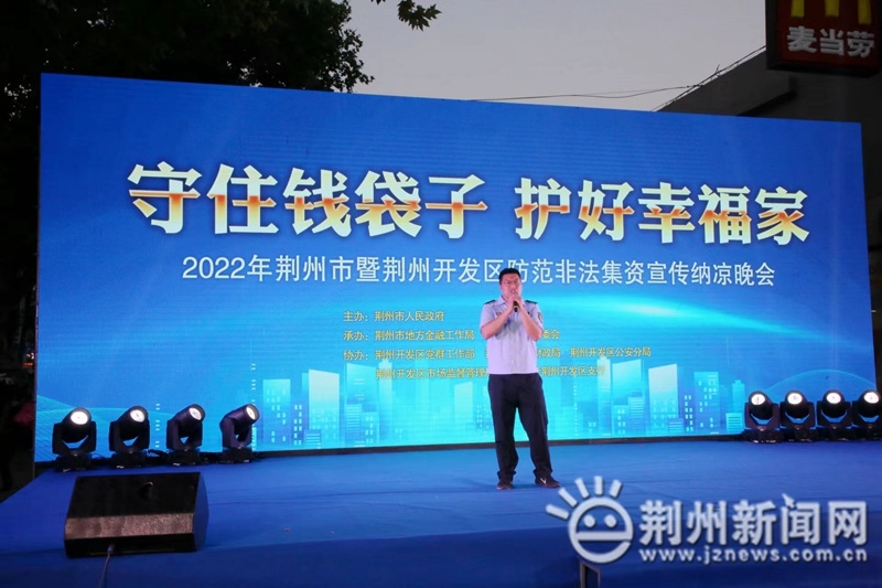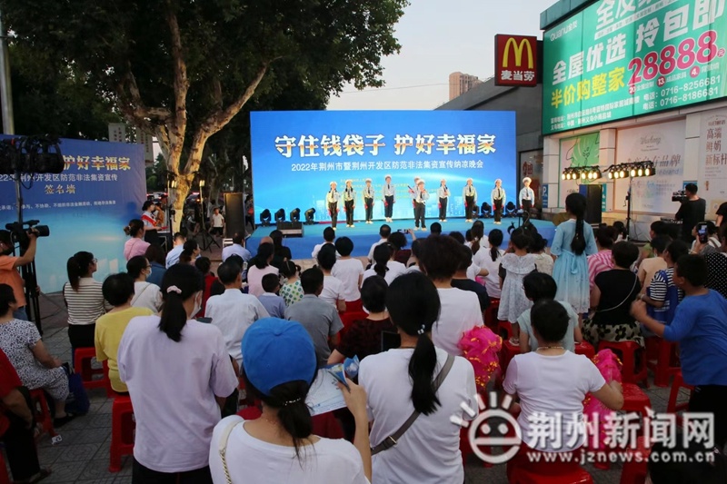 荆州新闻网消息(记者 肖琦 通讯员 黄平)守住钱袋子,护好幸福家!6月24日晚上,由荆州市人民政府主办,荆州市地方金融工作局、荆州开发区管委会承办的2022年荆州市暨荆州开发区防范非法集资宣传纳凉晚会,在豉湖路武商量贩门前举行。
