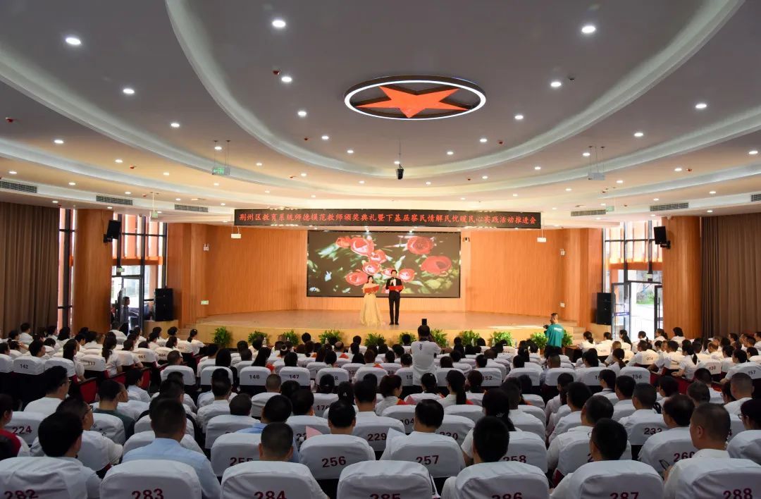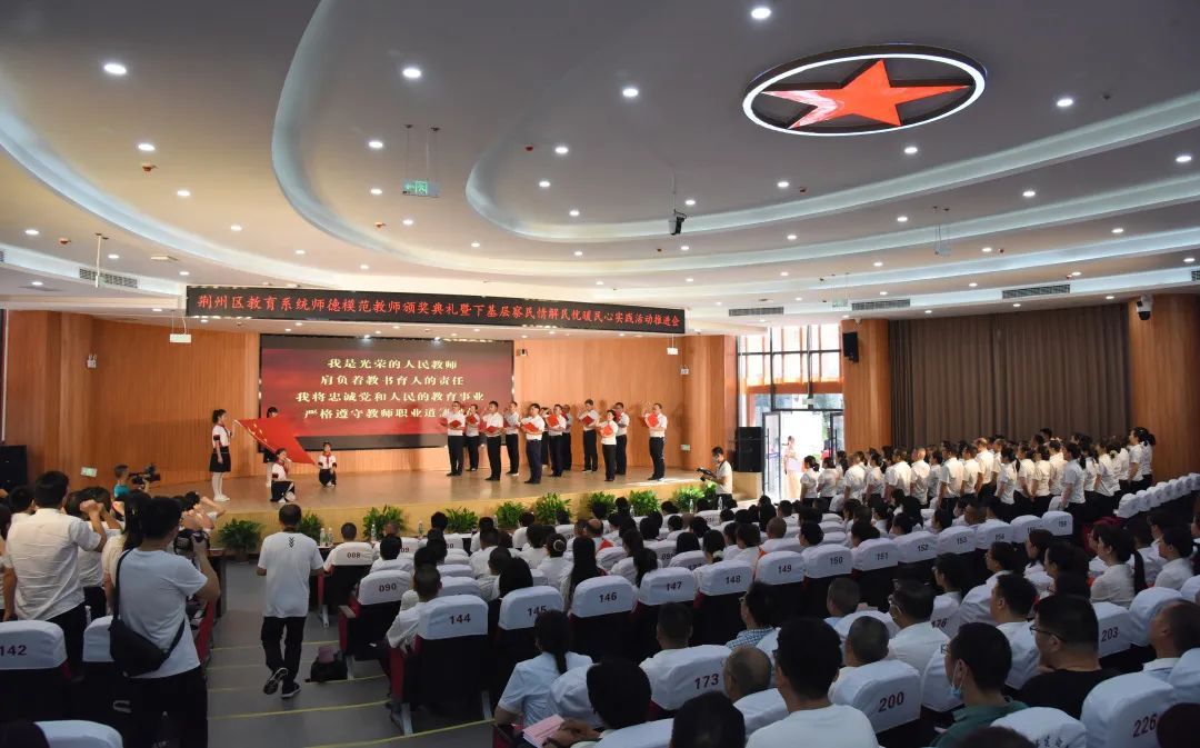 本次颁奖典礼现场分为《我宣誓》《我青春》《我选择》《我无悔》《我忠诚》《我奉献》六个篇章,充分展现了荆州区教师爱岗敬业、无私奉献的高尚职业精神。颁奖典礼采取现场演出、网络直播的形式在全区范围内呈现,近3500名教师在主会场与视频分会场参加师德先进模范颁奖活动。