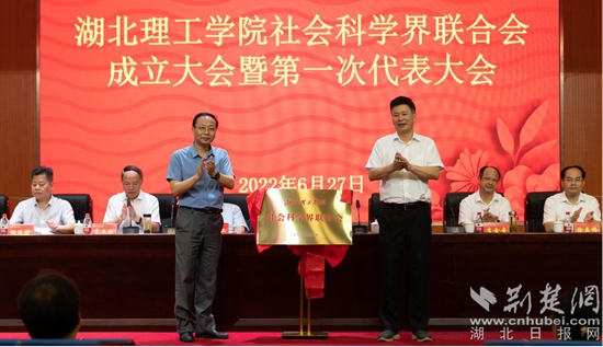 大会现场,省社科联办公室二级调研员郑成超宣读了《关于同意湖北理工学院社科联成为省社科联团体会员的批复》,省社科联党组成员、副主席王其涛和校党委副书记、校长李社教共同为“湖北理工学院社会科学界联合会”揭牌。
