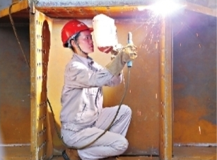 2008年,王中美到武汉参加天兴洲长江大桥的建设工作。爬上高高的脚手架,脚下是滔滔江水,还得仰头焊接作业,她总会习惯性地看看安全绳牢不牢固。“说不害怕是假的,我提醒自己不看脚下、安心焊接。”
