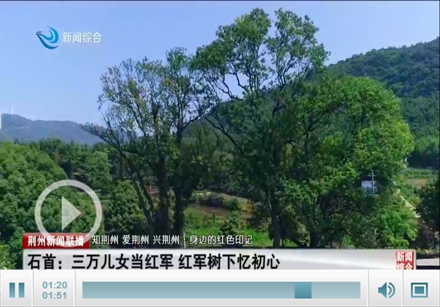 荆州新闻网消息:石首是一片红色沃土,在风云激荡的革命战争岁月,石首人民英勇奋战,前赴后继,用鲜血和生命为党的旗帜增光添彩,石首大地上也留下了众多的革命遗址。由中共荆州市委宣传部、荆州市史志研究中心与荆州广播电视台联合推出系列报道:《知荆州 爱荆州 兴荆州 身边的红色印记》,今天播出第四集《石首:三万儿女当红军 红军树下忆初心》。