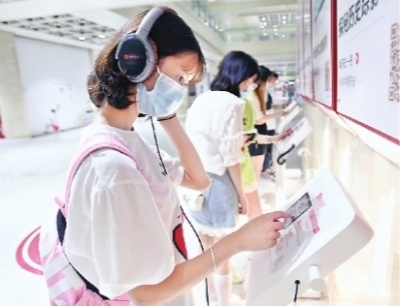 阅读驿站分别设置畅听专区,4台立式读书机内设时政、历史等18类万余专辑精品,热门好书荐读专区定制了读原著学原文等6个系列热门好书,有声图书馆听读专区馆藏16000余册好书好课、600余万条音频。