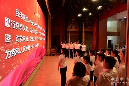 该院党委委员、工会主席姜海燕带领14名新党员宣誓,全体参会党员重温入党誓词。神圣的誓词,一字一句、铿锵有力,在铮铮誓言中回首自己的入党初心,进一步增强对党的坚定信念,努力践行全心全意为人民服务的宗旨。