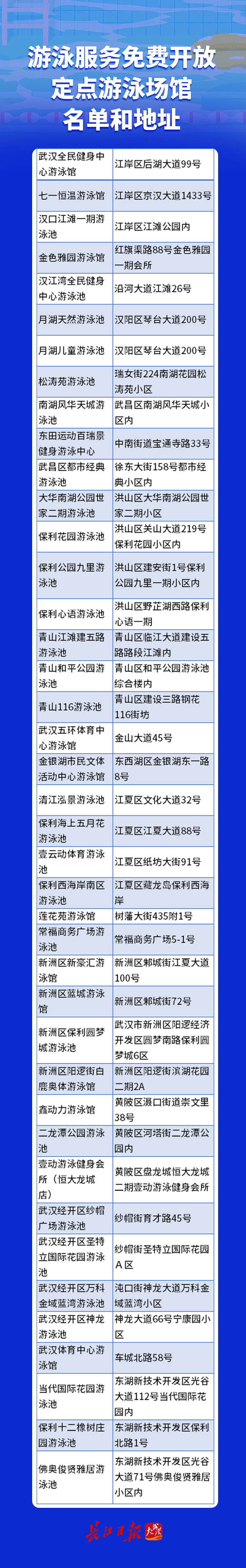 免费游泳服务活动将于7月10日开始一直持续到7月31日,历时22天,每天集中开放时间定为9:00-11:00和15:00-17:00。