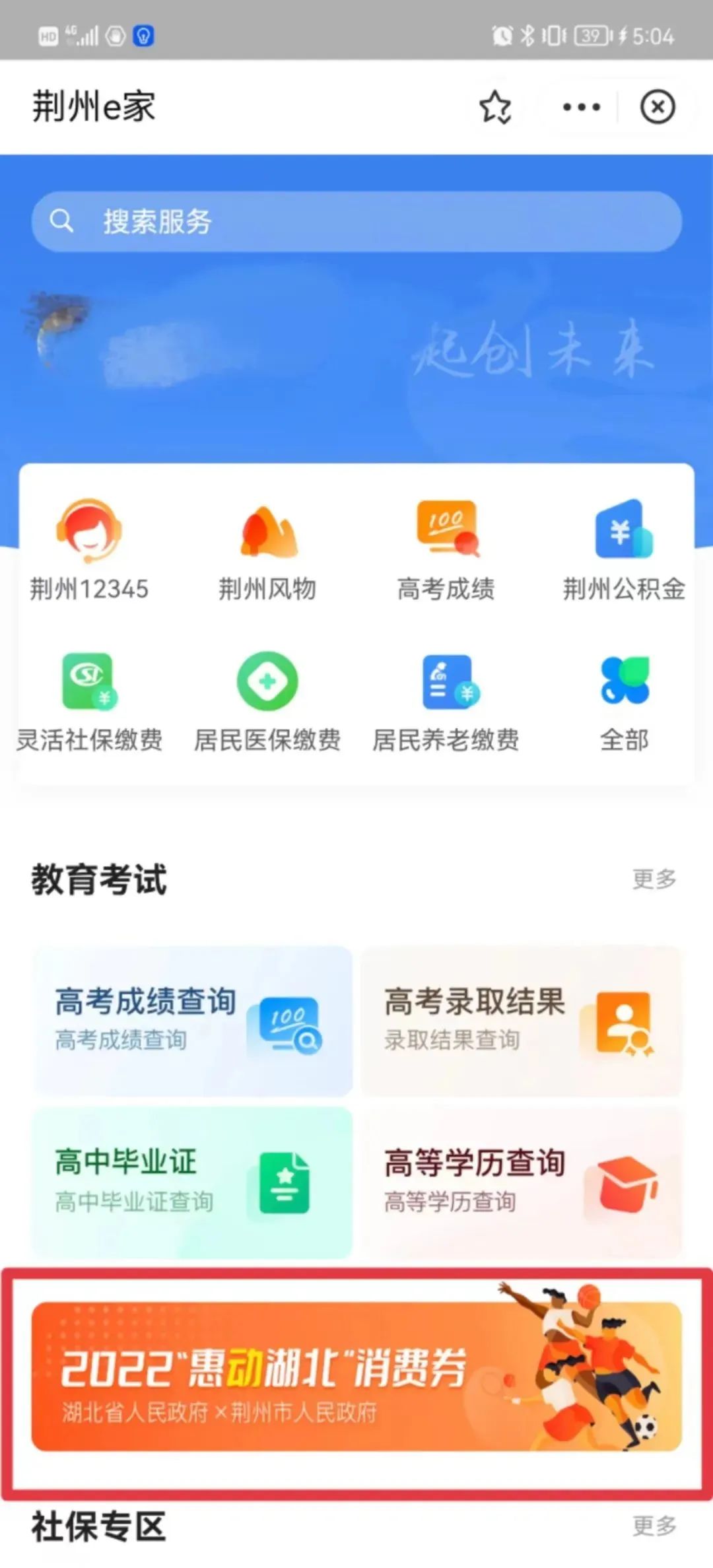 今天(7月8日)晚上8点2022“惠游湖北”第二轮第一批次消费券“惠动湖北”第一轮第一批次体育消费券将准点投放,市民可通过“荆州e家”支付宝端小程序抢券啦!