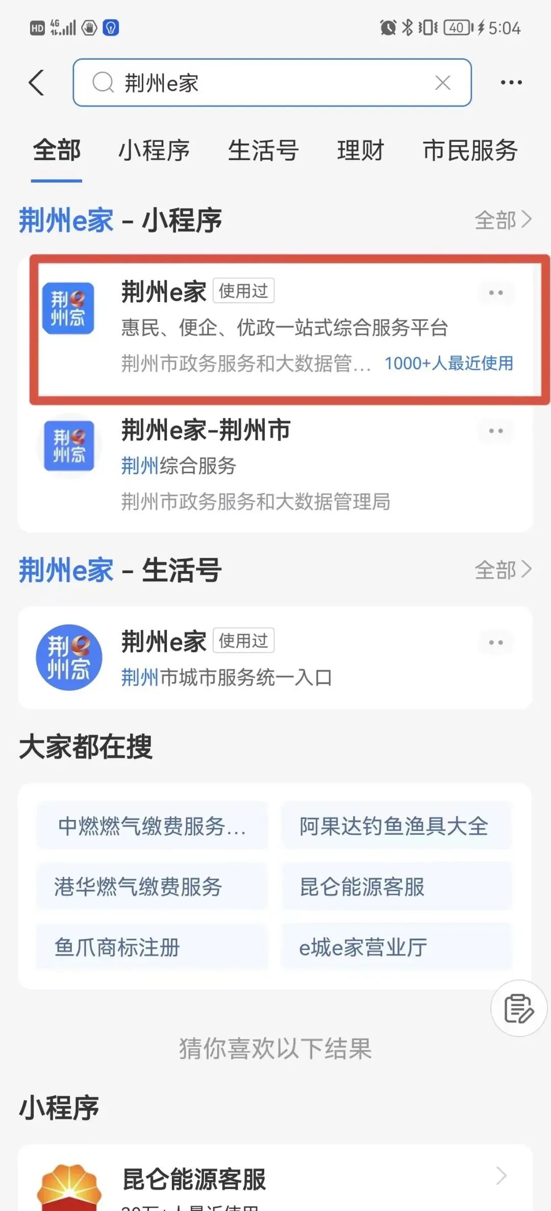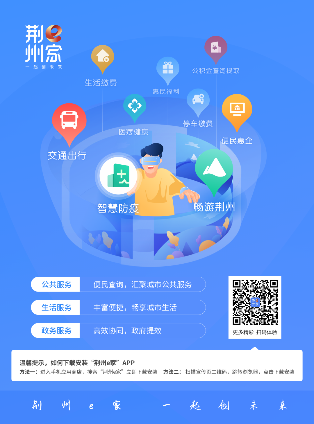 方法一:进入手机应用商店,搜索“荆州e家”立即下载安装;