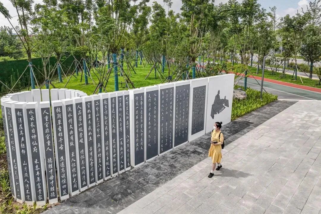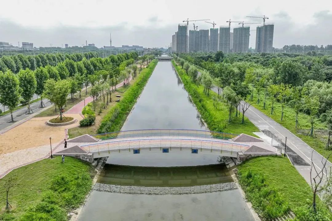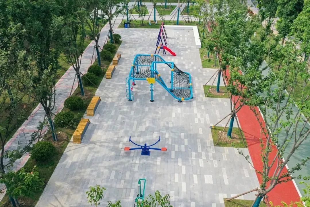 项目按照森林城市的理念,栽植了香樟、重阳木、朴树等10483株乔灌木以及芝樱、细叶美女樱、珍珠月季等11723平方米花卉,还根据周边用地性质,设置了广场、景观桥、游乐设施、诗联廊架、竹简特色景墙等不同元素装点步道,成为集健身、休闲、生态为一体的五“道”城市风景,完善了城市功能绿色网络,为周边居民营造理想生活氛围。