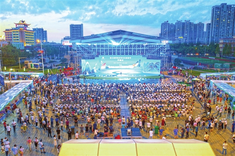 7月8日晚,第三届荆楚乡村文化旅游节在仙桃体育广场隆重开幕。