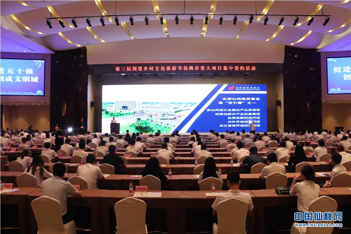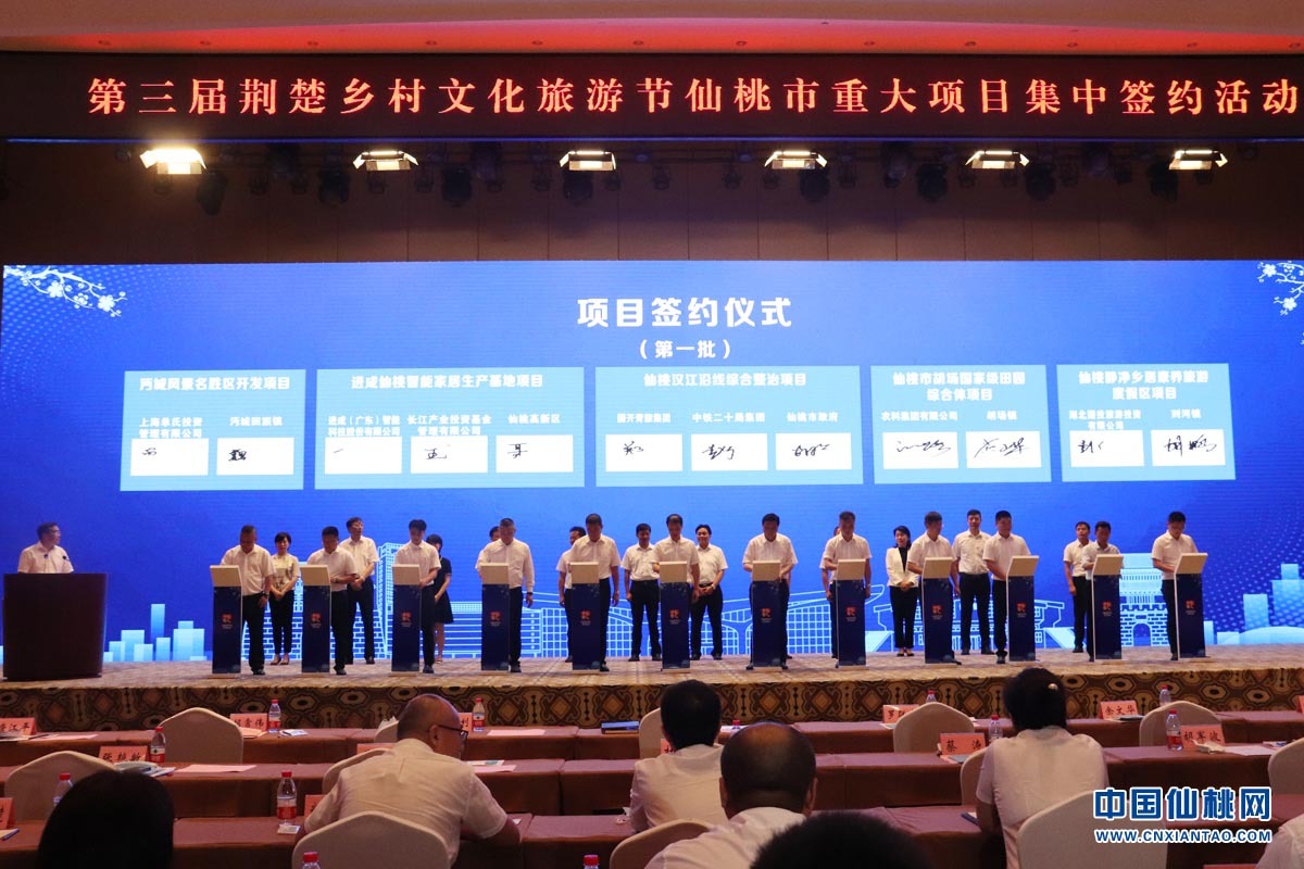 7月9日,第三届荆楚乡村文化旅游节仙桃市重大项目集中签约仪式在仙苑国际大酒店举行,34个项目签约,协议总投资352.7亿元。