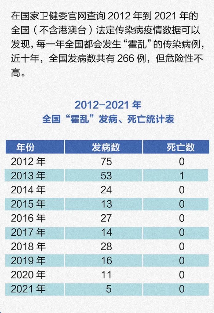 霍乱属于消化道传播疾病,在我国一直有零星出现。根据国家疾病预防控制局2022年4月发布的数据,2021年全国甲类传染病霍乱报告发病5例,无死亡病例。现代医学对霍乱有成熟的治疗手段,可防、可控、可治。夏季是肠道传染病的高发季节,武汉大学已采取一系列防范措施,保护师生身体健康。