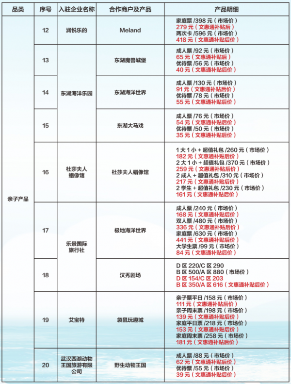 文惠补贴立享7折部分产品明细