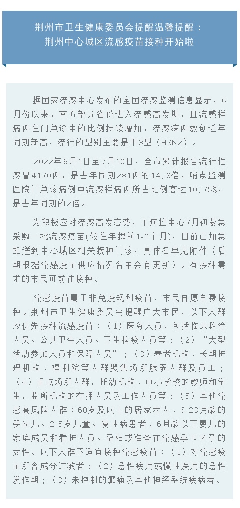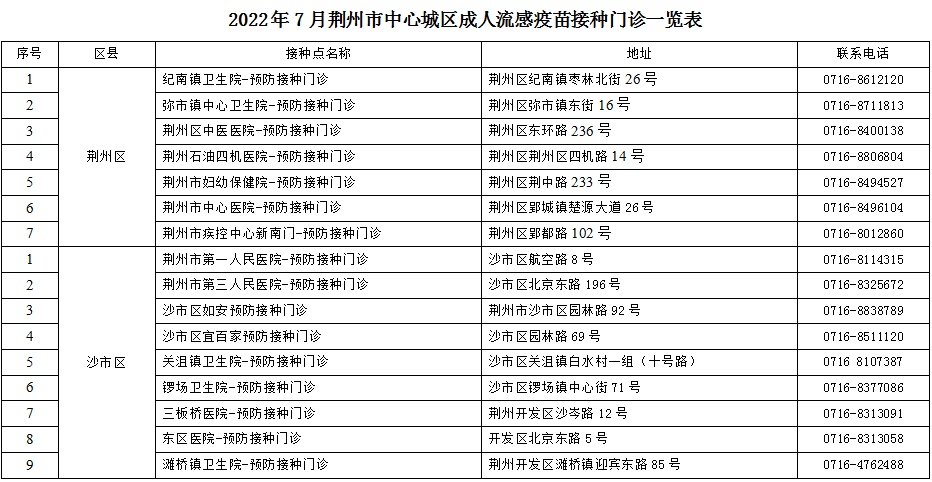 注:后期根据流感疫苗供应情况接种门诊名单会有更新!