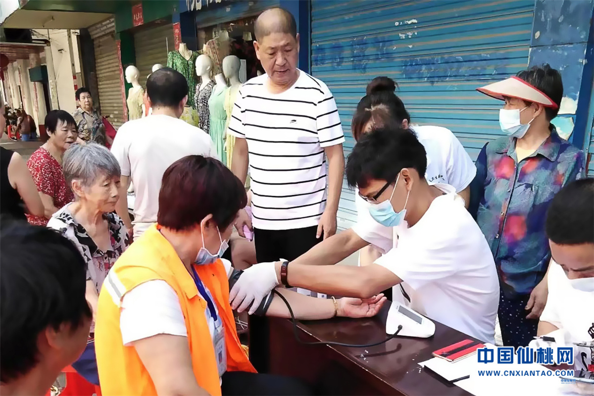 7月13日上午,仙桃市第一人民医院联合干河社区卫生服务中心在市文化宫内为环卫工人开展免费体检送健康活动。