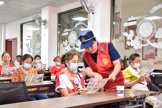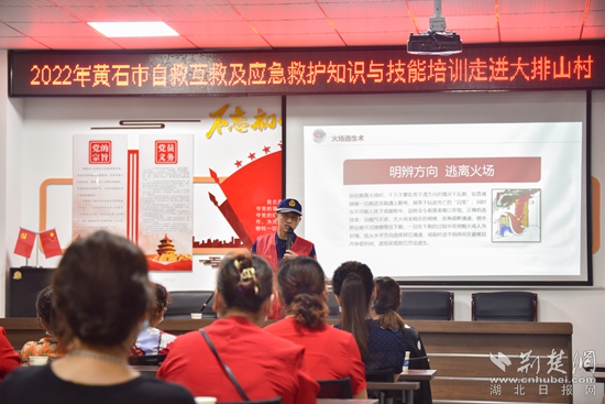 荆楚网(湖北日报网)讯(通讯员耿伟鹏)“各位街坊邻居,外出时候一定记得关上家中电器的电源,万一发生火灾时,要立即逃生,不要贪恋财物。”7月14日上午,在黄石市大排山村群众活动室的讲台上,一名消防志愿者拿着话筒正在与台下老人互动讲解消防知识。
