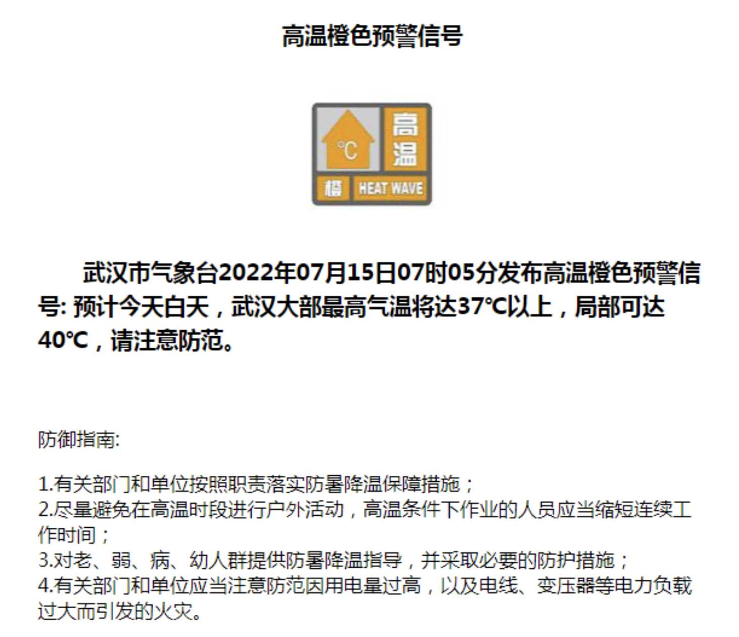 刚刚,武汉发布高温橙色预警