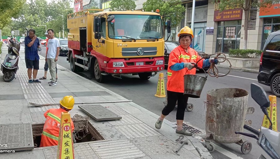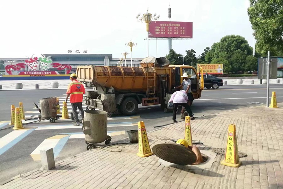 据了解,7月5日,受突如其来的强降雨影响,潜江城区多处积水,尤以潜江火车站积水最严重,不仅范围广且积水深,给群众出行带来了很大影响。在开展党员干部下基层察民情解民忧暖民心实践活动中,市市政工程管理局把整治易涝点作为为民办实事的具体内容,迅速安排专业技术人员对火车站及周边排水管网、井盖进行逐一排查,发现导致大面积水主要是污物污泥淤堵所致。