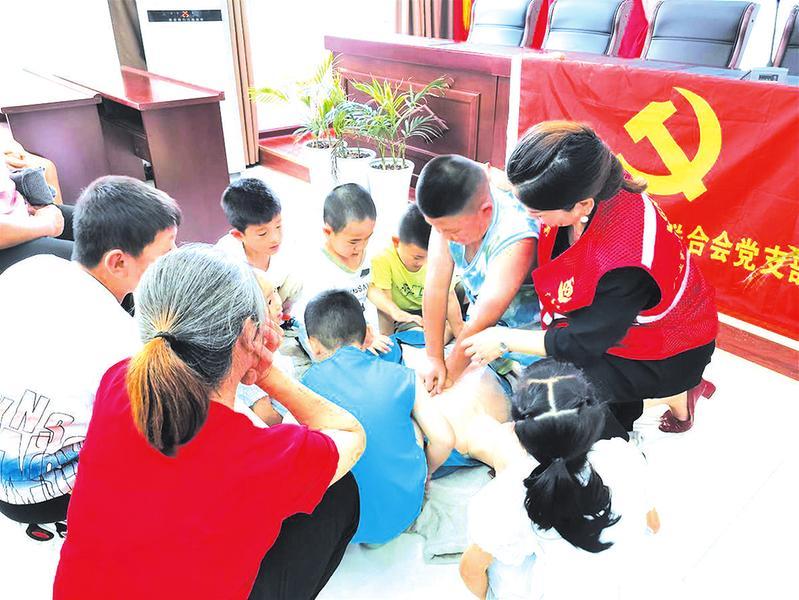 日前,广水市应山街道双桥社区组织开展防溺水、心肺复苏等安全防护技能宣传培训,60余名学生、家长和志愿者参加活动。 (随州日报通讯员刘小斌、程开军摄)