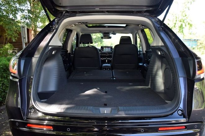 行李厢容积为380L,足够平整,并且行李厢高度很友好,第二排支持完全放平,进一步拓展之后的容积可以达到876L,够用是毫无疑问的。
