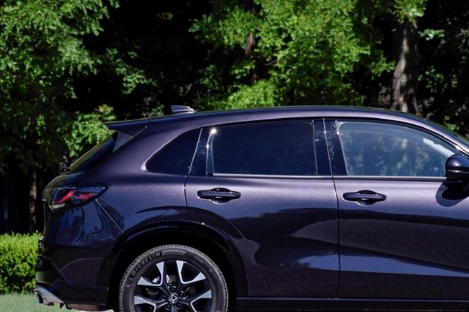 后排车门把手不是缤智的隐藏式,而采用了常规设计,并且第二排配备了隐私玻璃。