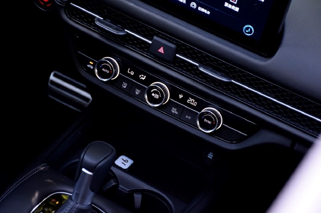 空调控制区保留了物理按键和旋钮,阻尼很显高级感,而且随着温度变化背景光也会渐变,细节用心了。