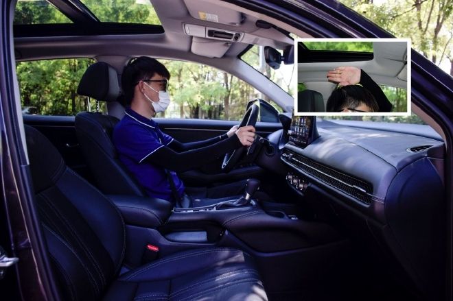 图中体验者身高为175cm,座椅调整到驾驶位后,头部空间还有整整5指左右的空间,相对于车身尺寸来说,这一表现算是出色,很重要的一个原因在于本田工程师优化了座椅的最低臀点。