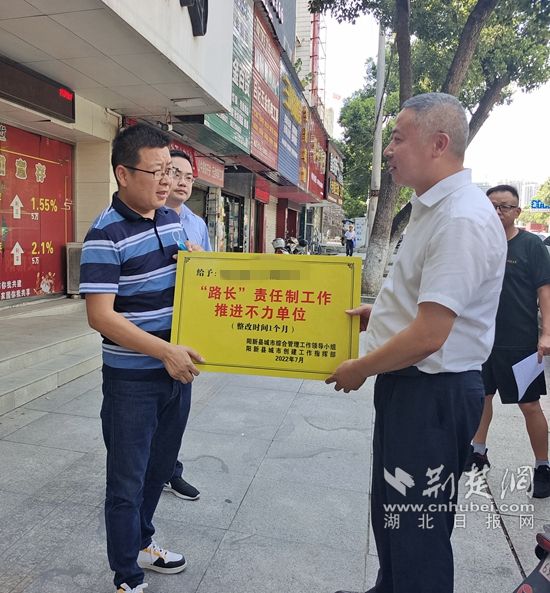 荆楚网(湖北日报网)讯(通讯员 许俊孝)阳新县城管局7月22日表示,为着力构建城市共建共管、全民共创共享工作新格局,助力新型城镇化示范县建设和国家文明城市创建,阳新县对“路长”和“门前三包”两项城市众管工作机制责任单位实施“黄牌”警示制度。目前,已有4家单位因连续两个月考核不达标“荣获”此牌,并挂牌督办,另有六家单位获得“示范单位”金牌荣誉。