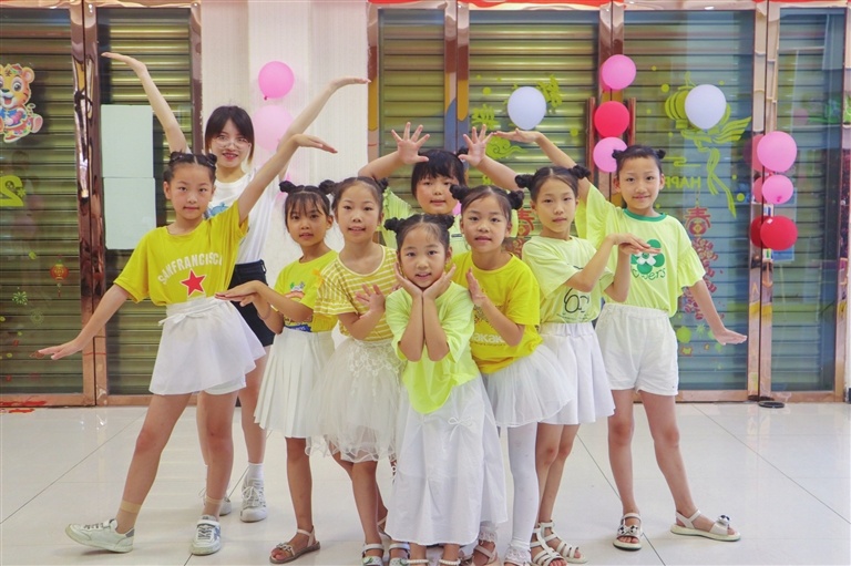 自我市关爱留守流动儿童“彩虹行动”启动以来,别样的温暖流淌心间,悉心的守护滋润儿童心灵。7月15日,在木兰花陈场托管站,一场丰富多彩的文艺汇演正在进行,志愿者们与孩子们精心编排的《爱你》《彩色中国》《刷卡舞》等节目轮番上演,让孩子们的笑脸一个个定格。图为孩子们表演现场。(摄影 记者 鹿丹丹 通讯员 叶昌慧)