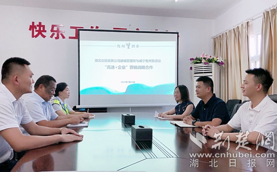 荆楚网(湖北日报网)讯(通讯员 向青 徐胜)7月25日,湖北交投武黄公司通城管理所与咸宁隽州篁酒业公司达成战略合作协议,此次站所与咸宁隽州篁酒业公司开展“高速+企业”营销合作,是继该所与隽达文旅公司推行“高速+旅游”营销合作的又一次新尝试。