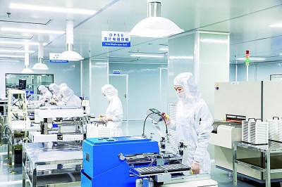 湖北省襄阳市,臻芯传感科技工作人员赶制汽车用传感器订单。杨东摄/光明图片