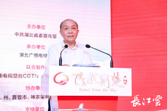 中央广播电视总台(CGTN)专题节目部主任汪飞舟在致辞中说,湖北有着厚重的历史文明,有代表着中国浪漫主义起源的《楚辞》,有和古希腊文化并肩齐行的荆楚文化,有能奏出现代钢琴上所有黑白键音响的却在2400年前就在使用的乐器编钟。湖北水陆发达,自古有“九省通衢”之称,19世纪以来,成为享誉全球的国际商贸物流中心,到21世纪,湖北已经是国际物流多式联运的中心枢纽。今天所站的武汉光谷,这里是中国乃至全球光芯光缆、光器件、激光等研发生产的基地。特别是近十年来,湖北的高速发展日新月异,成为中国当下闪亮世界的一张骄傲的名片。为向世界展示荆楚大地深厚的历史文化和党的十八大以来的高速发展,CGTN将与湖北广播电视台合作,制作2022《飞越荆楚》国际版系列节目,用多语种向海外传播。
