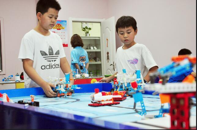 7月28日,在我市一家编程教育培训班内,不少中小学生利用暑假学习机器人编程,提前做好人工智能时代的知识储备。