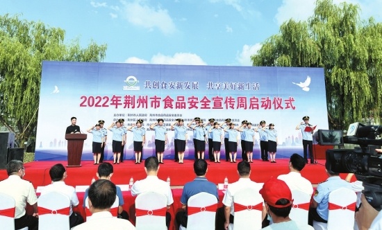 民以食为天,食以安为先,安以法为基。7月29日上午,2022年荆州市食品安全宣传周启动仪式在荆州区金凤广场举行,正式开启以“共创食安新发展、共享美好新生活”为主题的宣传周活动。