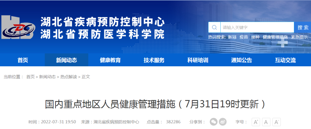 湖北省疾病预防控制中心官网发布