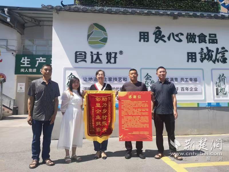 荆楚网(湖北日报网)讯(通讯员向继武、宋吉玲、周涛)7月29日上午,建始食达好、长鑫集团、泰丰水泥有限公司等8家企业,分别收到来自茅田乡八里荒村村民代表送来的“助力乡村振兴 彰显企业担当”的锦旗和《感谢信》,感谢爱心企业捐款10万元,解决村里安装路灯、硬化健身场所(设备)、改善人居环境等惠及550余人看得见,摸得着的实事。