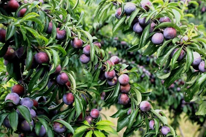 漫山遍野的李子园里