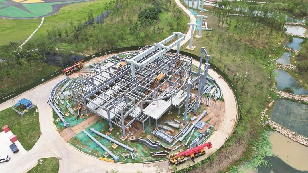 截至7月底,沿线六大站点钢结构加工已基本完成,主体结构安装完成50%,其他配套工程已基本完成,正在谋划车站装修、机电安装等施工工作;区间桥梁工程已完成30%左右,正在以一天架设12个钢构件的速度往前推进。