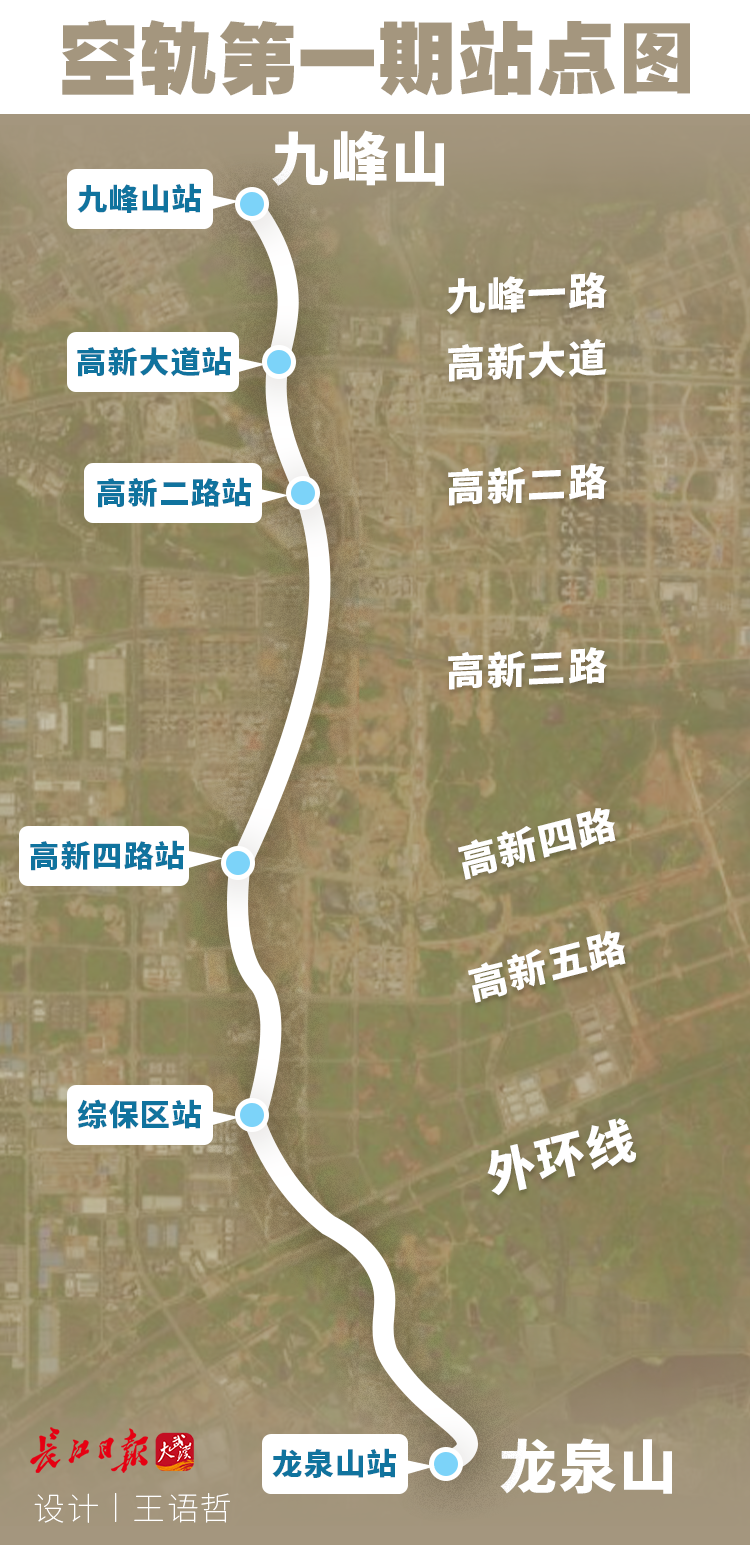 光谷空轨采用悬挂式单轨制式,属于新兴轨道交通领域项目。工程线路规划总长26.7km,北起于花山河,南止于牛山湖环湖湾区,共设车站16座。