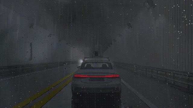 极端环境测试区的“极端环境仓”,通过工作人员的操控,借助VR与车路协同技术,上一秒还“艳阳高照”,下一秒就“暴雨倾盆”,充分测试出汽车在雨、雾、雷、电等极端气候下的稳定性。