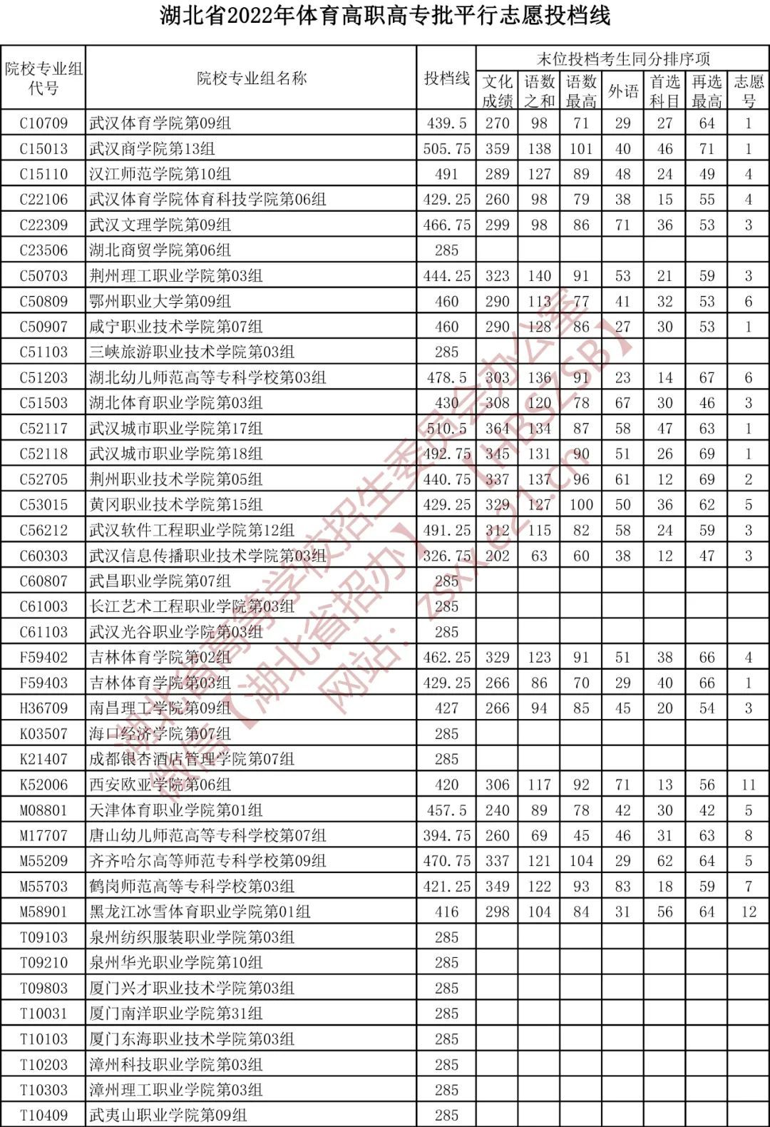 湖北省2022年体育高职高专批